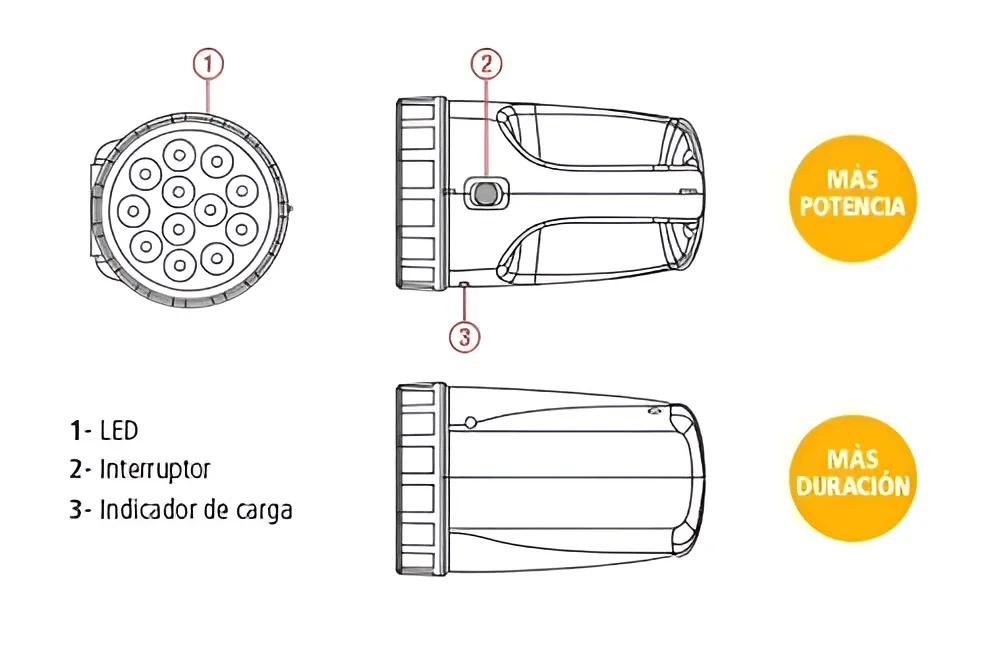 Linterna recargable TBCin LE-12L, equipada con 12 LEDs de alta luminosidad. Ofrece buena autonomía, bajo consumo y es ideal para uso doméstico, trabajo o emergencias.